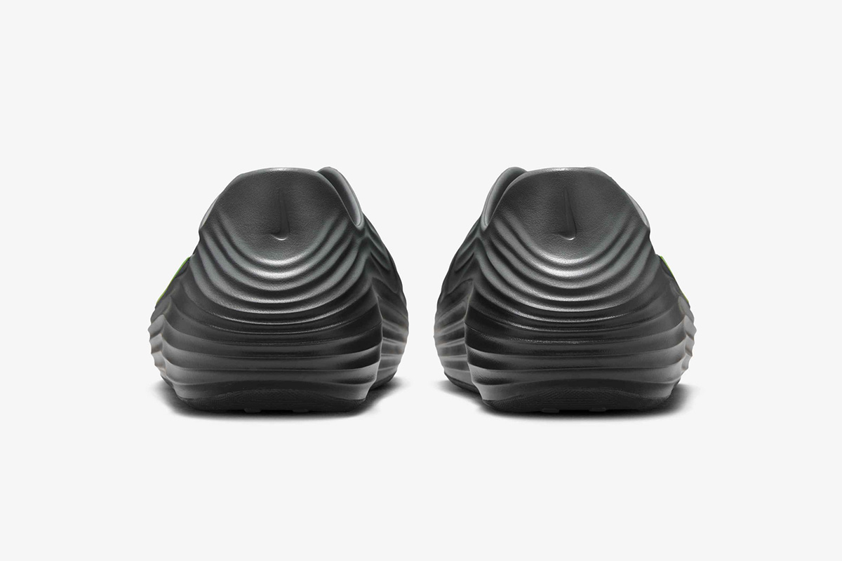 The Nike ReactX Rejuven8 ‘Black Volt’ delivers a comfortable slip-on recovery shoe built with molded ReactX foam. Finished in Cool Grey, the top half is highlighted by ventilation holes throughout the vamp. The bottom half is rendered in a solid black finish and includes a radial-pattern rubber outsole. On the lateral side, a molded Swoosh in Volt enlivens the neutral design with a neon pop of color.