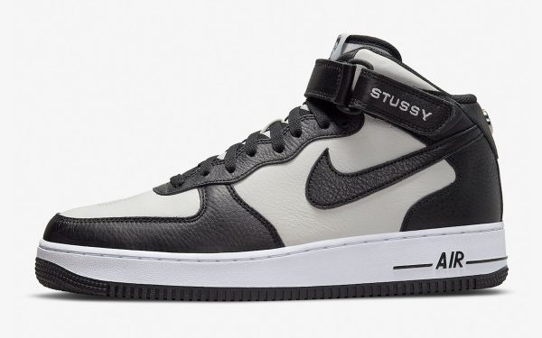The all-leather upper features a crisp white base with contrasting black overlays and a matching black Swoosh.